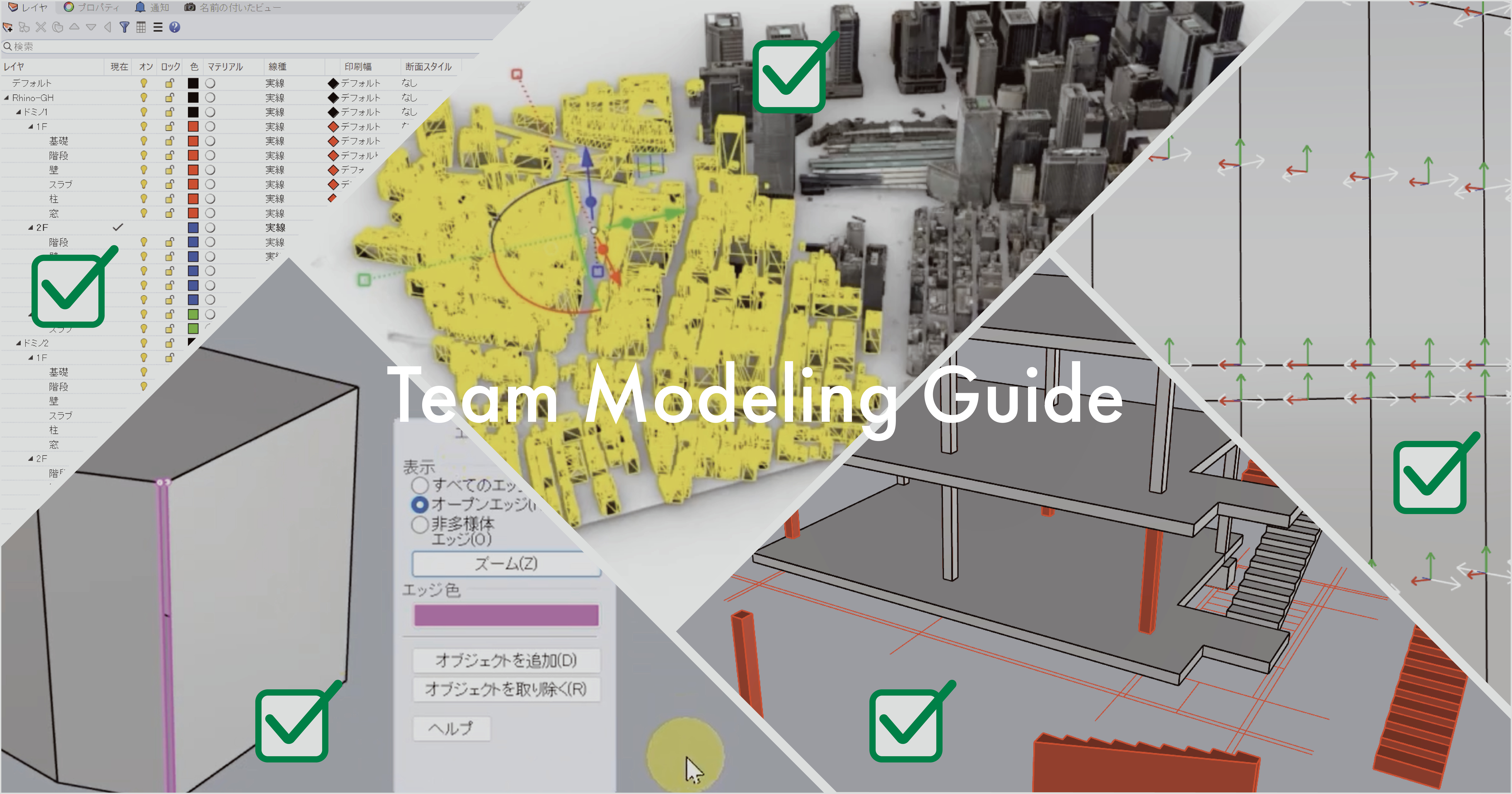 • チームメンバーとの協業を視野に入れてRhinocerosでモデリングを行う際に、確認すべき重要なポイントをまとめたリストです